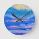 The clock did not take as long to arrive as I thought it might and was extremely well packaged. I didn't do the measurements so I didn't realize it is a little smaller than the average clock but that does not matter (just make sure you check if that's important to you).It is really nifty! It seems very solid and well made not flimsy at all. It has been going well and has kept good time in its few weeks on my wall. Nice product. Gets noticed too! Nicer in real life than the picture but true to the picture