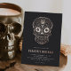 A spooky chic Dia de los Muertos themed birthday party invitation featuring an intricate calavera sugar skull illustration in shining rose gold foil. Personalise with your party details beneath.