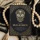 A spooky chic Dia de los Muertos party invitation featuring an intricate calavera sugar skull illustration in shining gold foil. Personalise with your party details beneath.