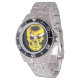 Has heft and feel of expensive stainless steel quartz watches. Good band with safety catch. I removed links, which is easy because engraved arrows show direction to push the linking pins. As always by this seller, the image (a railroad logo) is a perfect reproduction of my emailed image, and is precisely spaced and aligned.