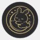 Simple and elegant Easter sticker featuring a sleeping bunny inside a moon circle with star accents. The clean gold line design on a dark background gives a modern and calm look.