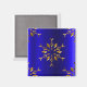 A colourful, elegant Christmas magnet featuring a large golden snowflake (or star) set on a vivid, royal blue background to add a special designer touch to your kitchen or home this holiday season.