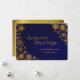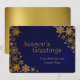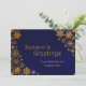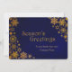 Elegant flat style Christmas greeting card done in a dark blue grunge background, with rich golden looking snowflakes, on the left and right sides of the card. Gold tone graphic text reads Season's Greetings. Personalise the golden yellow text, on the bottom of the card to suit your company needs.