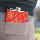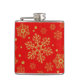 Golden snowflakes on red hip flask