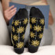 Add a touch of bling to your wardrobe with this Golden Snowflake pattern. This glitzy design features a repeating pattern of gold colour snowflakes on a black background. For additional bling, the top of both socks has a gold colour band.