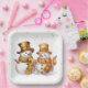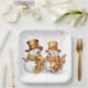 A Golden Snowman Couple Snowfall Square Holiday Paper Party Plate