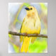 Colour illustration of a golden songbird perched on a branch, by Yuichi Tanabe