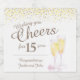 Anniversary sparkling wine glasses watercolor art wine labels. Edit these labels with your own couples name and anniversary year. Currently reads Wishing you cheers for 15 years Congratulations Jackie and John. Ideal for gifting sparkling wine in a personalised way. Watercolor art personalised labels in golden yellow and brown hues. © Unique watercolor art and graphic design by Sarah Trett. www.sarahtrett.com for www.mylittleeden.com