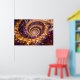 A mesmerising geometric spiral glowing with golden light and deep violet tones, perfect for modern abstract art lovers.