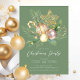This elegant Christmas holiday party invitation features a beautiful pine branch, green and gold Christmas ball ornaments and a gold star set on a green background. The invitation is perfect for inviting your friends and family to a festive holiday gathering. The overall design is festive and sophisticated, and the invitation is sure to impress your guests.