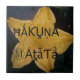 This artwork features a large, star-shaped flower in bright yellow as the central focus. Overlaying the flower are the words "HAKUNA" and "MATATA" in a stylised font. The composition is simple and direct, emphasizing the phrase's placement on the flower. The background is dark and blurry, providing a striking contrast to the bright yellow flower.
