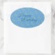 Golden Starry Moon, Picton Blue Happy Birthday Oval Sticker
