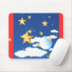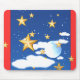 This design features golden stars with fluffy white clouds and a full moon under a midnight blue sky. Has a red border. The mouse pad will make a great addition to your computer desk, or simply give it for a gift to someone who loves the sky and stars.
