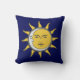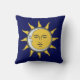 Conjunction of Golden Sun and Silver Moon on navy blue Pillow. Conjunction of sun and moon stands for equilibrium, balance and harmony!