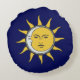 Golden Sun and Silver Moon on Navy Blue Round Cushion