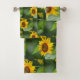This towel set features a pretty yellow sunflower growing in a Connecticut garden.