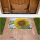 This doormat features a cheerful welcoming sunflower.