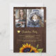 Rustic country style 4 PHOTO collage graduation party stylish invitation template on brown barn wood background featuring big yellow gold sunflowers bouquets. ++++++++++++++++++ Personalize with your text and images on both sides! ++++++++++ The invitation is suitable for outdoor garden / backyard rustic country graduation parties. +++++++++++++++++ If you need help in customizing it, please contact the designer through the MESSAGE button below.