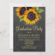 Rustic country style PHOTO graduation party stylish invitation template on dark grey charcoal chalkboard background featuring big yellow gold sunflowers bouquets. Fill in your information in the spots, You can choose to customise it further changing fonts and colours of lettering. ---- The invitation is suitable for outdoor garden / backyard rustic country graduation parties. --- If you need assistance, please contact me!