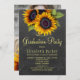Golden sunflowers rustic PHOTO graduation party Invitation