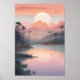 Immerse yourself in the calm beauty of this golden sunrise landscape. Layers of misty mountains are bathed in soft pinks, purples, and golden hues, reflecting perfectly in a tranquil lake below. The subtle gradients and minimalist composition make this piece ideal for modern interiors, bringing a peaceful and elegant vibe to any space.