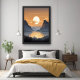 Immerse yourself in the captivating beauty of this AI-generated landscape artwork poster print that portrays a stunning sunset scene over a vast mountain range. The radiant golden sun sets between towering, jagged peaks, casting a warm, golden glow over the entire valley. The serene reflection of the sun on the calm waters below adds a sense of tranquillity and grandeur to the artwork. With its soft clouds, peaceful trees, and vivid yet soothing colours, this piece evokes a deep sense of calm and awe for nature’s raw beauty. This nature-inspired artwork Is the perfect addition to any home, office, or living space, bringing the outdoors inside with an unforgettable view of majestic mountains at dusk. Ideal for nature lovers, outdoor enthusiasts, or anyone seeking a peaceful yet dramatic scene to enhance their interior decor. Whether you're looking to complete your living room, bedroom, or office space, this piece will transform any wall with its breathtaking colours and composition. Perfect for occasions like housewarmings, anniversaries, and even birthdays, this artwork is designed for those who appreciate the splendour of the great outdoor.