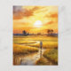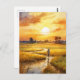 Golden Sunset Over Rural Rice Fields Postcard
