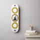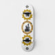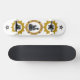 The Golden Sunshine Gothic Castle Art Vector Custom Skateboard brings together imaginative illustration, symbolic elements, and modern vector aesthetics to create a striking piece suited for skating, collecting, or decorative display. This board features a distinctive composition cantered around a stylized castle rendered in a clean, polished vector style. The structure is drawn with sharp lines, smooth shading, and subtle geometric influences, giving it a mysterious yet refined appearance. The castle sits within a circular golden frame designed to resemble a metallic emblem, adding depth and visual contrast to the bright white deck background.