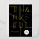 Simple Golden Thankful Lines Modern Geometric Typography On A Dark Charcoal Black Background, Non Photo Business Real Foil Pressed Holiday Card / Corporate Holiday Greetings With Your Own Custom Logo.