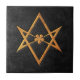 Golden Thelemic Unicursal Hexagram Black Leather Tile