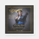 This napkin features a full-length photo of the graduate framed with whimsical, bright gold wavy lines and is a vibrant gold-inspired design.