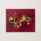 Golden Treble Clef with Rose Flowers Jigsaw Puzzle