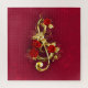 Golden treble clef, decorated with red roses and gold leaves on textured background.
