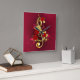 Golden treble clef, decorated with red roses and gold leaves on textured background.