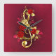 Golden Treble Clef with Rose Flowers Square Wall Clock