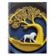 A spiral notebook adorned with an illustration of a white lion on the cover. The design highlights the majestic and regal nature of this animal.