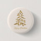Festive Golden Tree Merry Christmas Button. Features a golden Christmas tree and a hand written script text.
