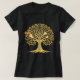 The image you provided depicts a golden tree with intricate roots and branches. The tree is adorned with leaves and bears two fruit-like objects.