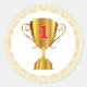 Golden trophy cup classic round sticker