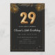 Adorable 29th birthday party invitation in a black and gold balloons design with golden tropical palm leaves. Customize with your party details and mail out to family and friends inviting them to celebrate the 29th birthday with style!