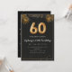 Adorable 60th birthday party invitation in a black and gold balloons design with golden tropical palm leaves. Customise with your party details and mail out to family and friends inviting them to celebrate the 60th birthday with style!
