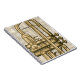 Cool musical themed notebook with an artwork of a golden trumpet. Personalise with your name.