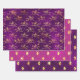 Celebrate with celestial charm using this magical unicorn design set. Featuring golden unicorns in dynamic poses across rich purple and pink backgrounds, each pattern glows with scattered stars and shimmering sparkles. The layered presentation blends fantasy elegance with playful glamour, making it perfect for themed parties, milestone events, or whimsical gift wrap that radiates joy and enchantment.