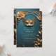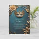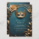 Experience an evening of enchantment and elegance with this Masquerade Ball invitation. This design showcases a rich blue background adorned with faux golden ornamental decor, 3D foliage, and a captivating masquerade mask.