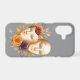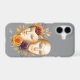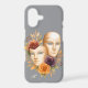 An artistic case featuring two golden Venetian-style masks surrounded by elegant roses in warm tones of amber, mauve, and peach, a symbol of mystery and beauty, personalised with a refined monogram.