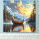 Golden Viking-Inspired Boat Resting on Mystic Lake Canvas Print