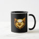The artwork uses layered shapes and strong contrast to stay sharp as it wraps around the mug, creating a balanced look from every angle. The central emblem remains clear and readable at a glance, making it a strong desk or kitchen piece rather than a decorative pattern.