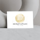 A gold-toned watercolor circle containing a simple white tree with leaves is the perfect visual design to accompany your name or business name on this counseling services/life coach business card template. © 1201AM CREATIVE