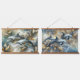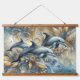 This set of two hanging tapestries brings together a pair of enchanting dolphin dreamscapes, each blending ocean life with intricate botanical elegance. In one design, dolphins glide through swirling waves framed by golden leaves and soft floral accents, while the companion piece carries the theme forward with luminous tones of teal, silver, and shimmering gold. Together, they create a harmonious balance of energy and tranquillity, making them perfect for display side by side or in separate spaces for a cohesive decorative theme. The flowing curves, delicate details, and ocean-inspired palettes evoke feelings of freedom, serenity, and natural wonder. Ideal for ocean lovers, coastal interiors, or anyone drawn to imaginative marine beauty, this set captures both movement and stillness in equal measure. AI generated artwork.