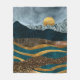 A captivating abstract landscape blanket featuring layered golden and teal waves flowing across the foreground, contrasted with dark mountains and silver textures. A glowing golden sun rises (or sets) behind the peaks, casting a serene and mystical atmosphere. Rich textures of foil, glitter, and marble-like surfaces bring depth and elegance, making this design perfect for those who love modern, nature-inspired, and luxurious styles.